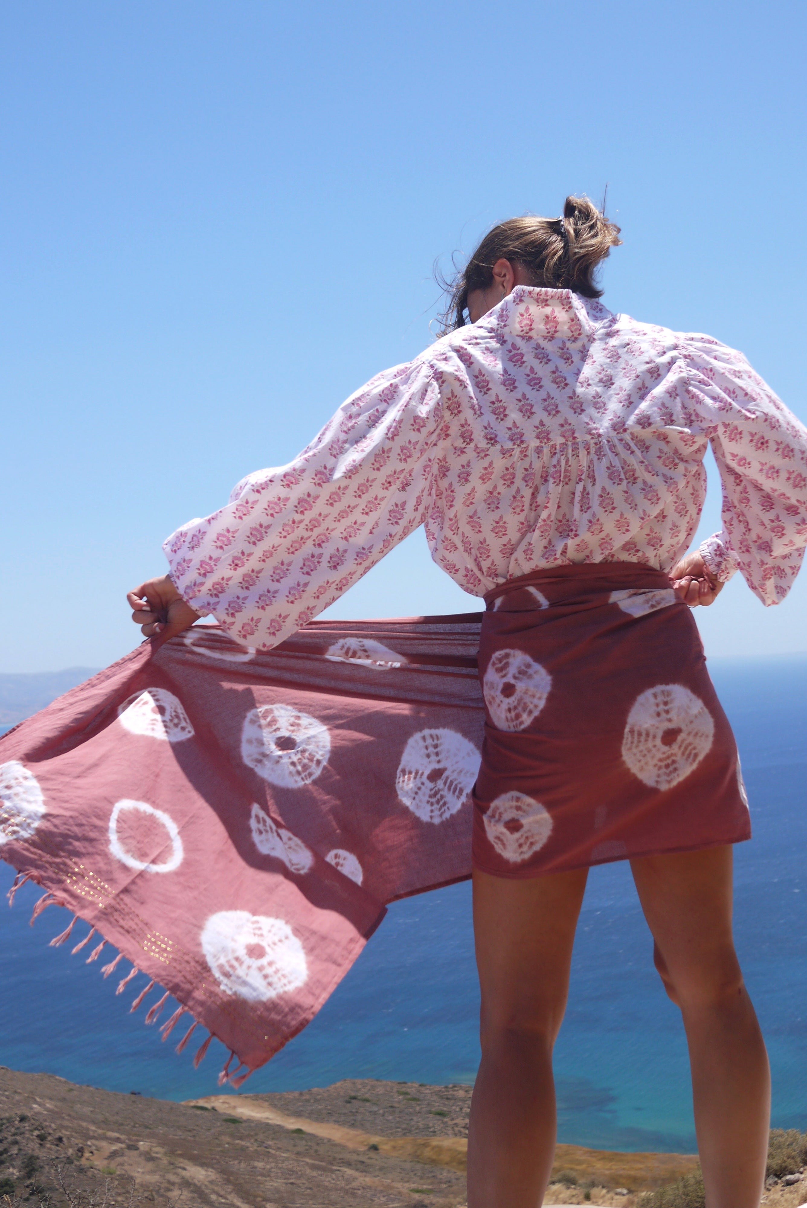 Shibori Skinny Pareo with Hand Stitching - Cocoa
