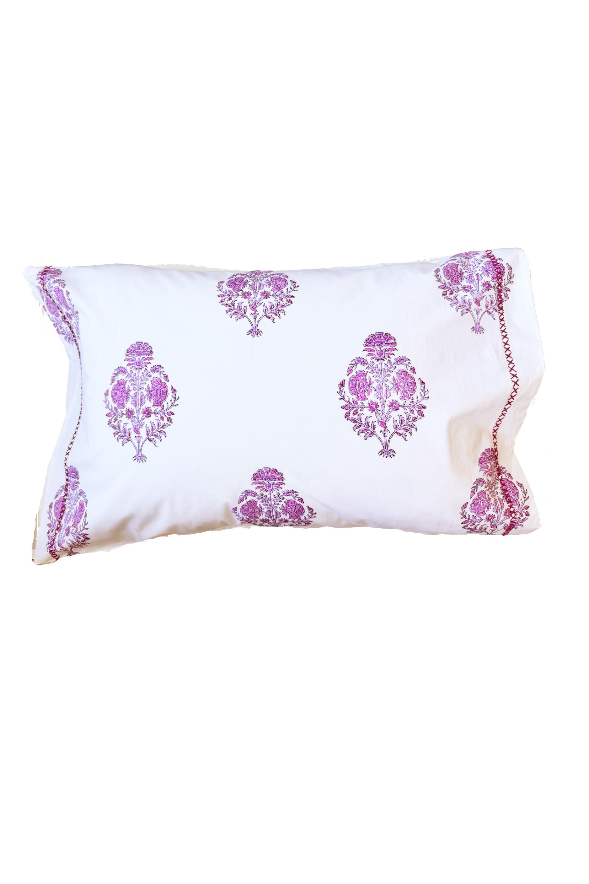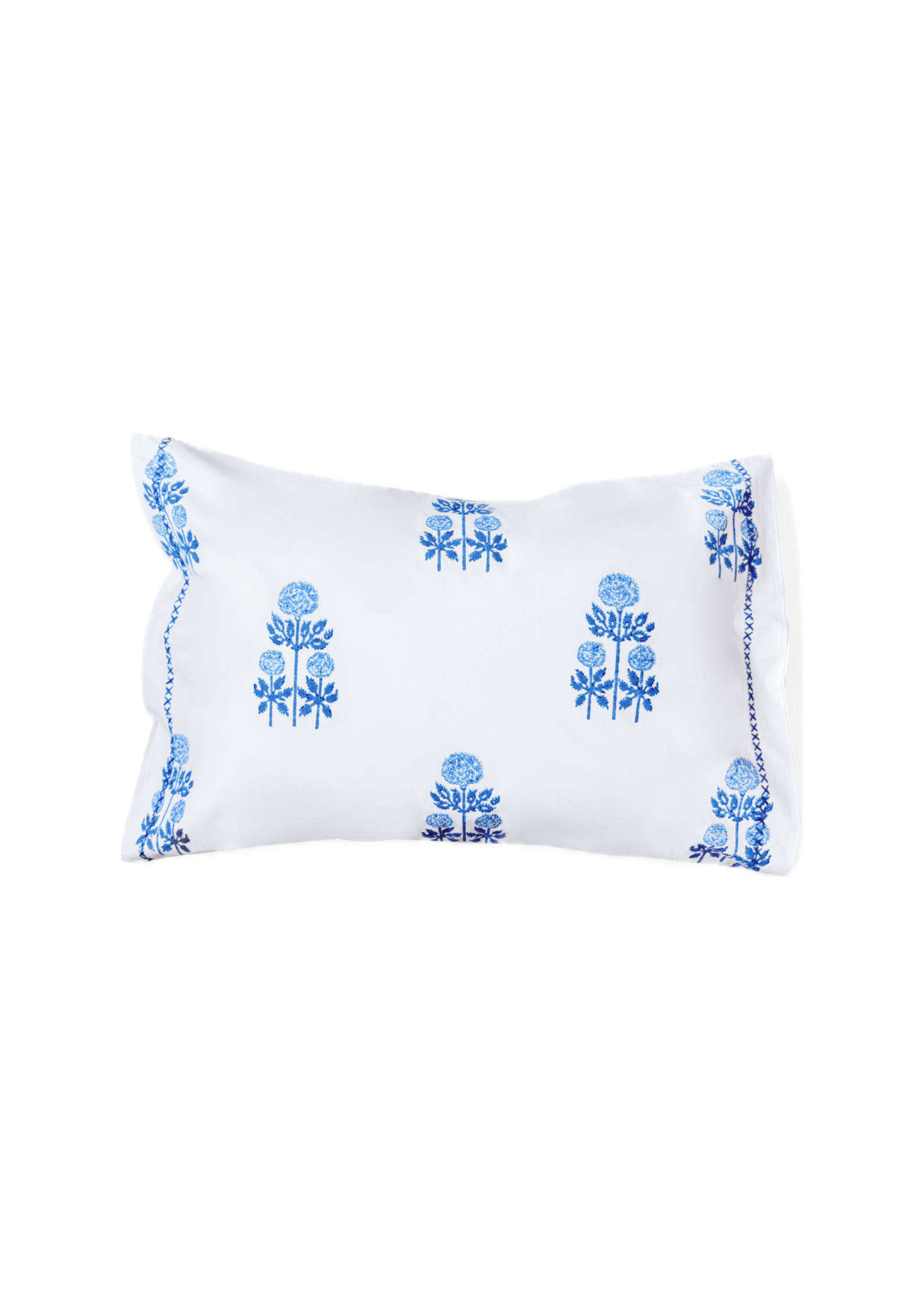 • Hand Block Printed Pillowcases in Blues with Piping