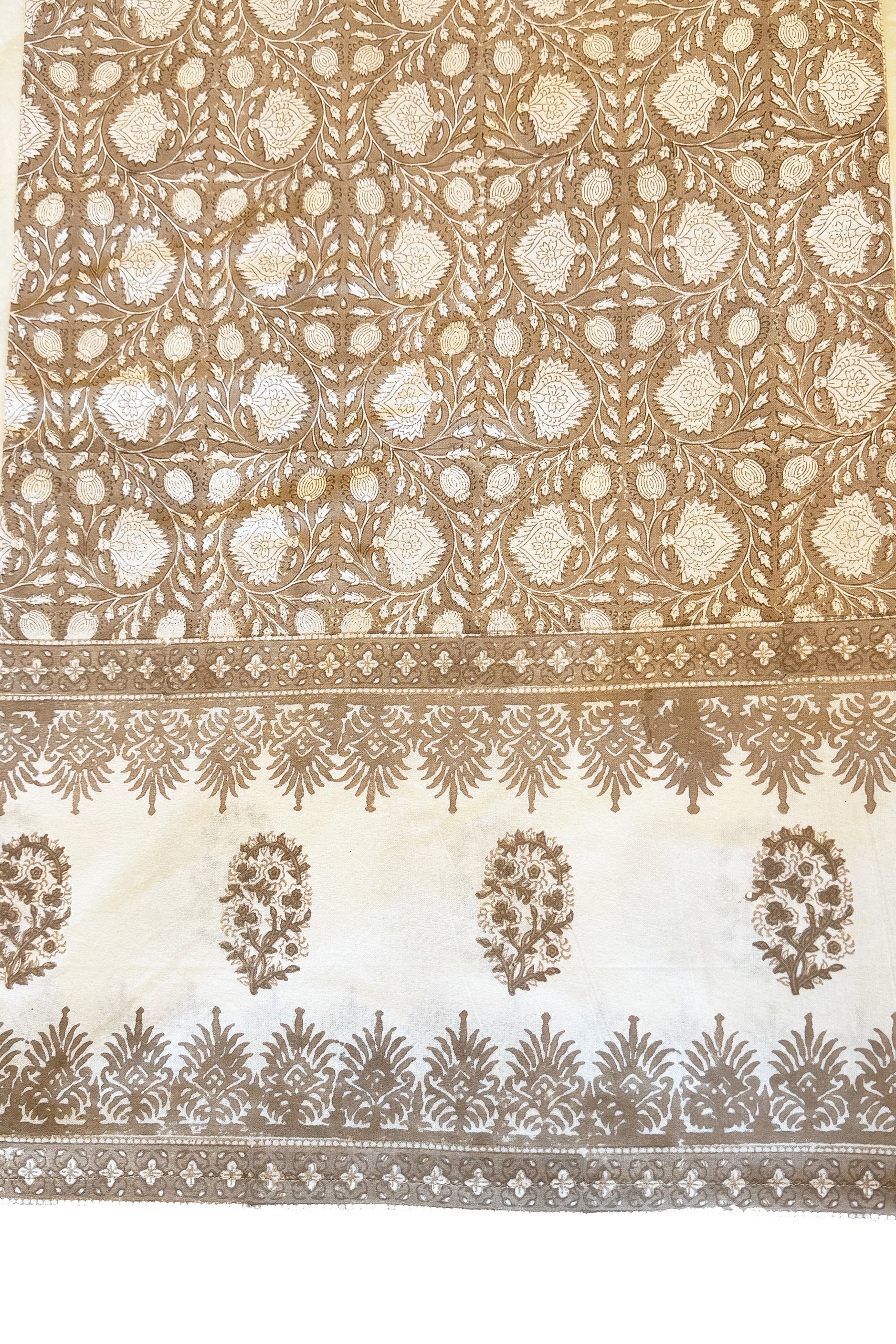 Faridabad Flower Tablecloth with Borders in Sand