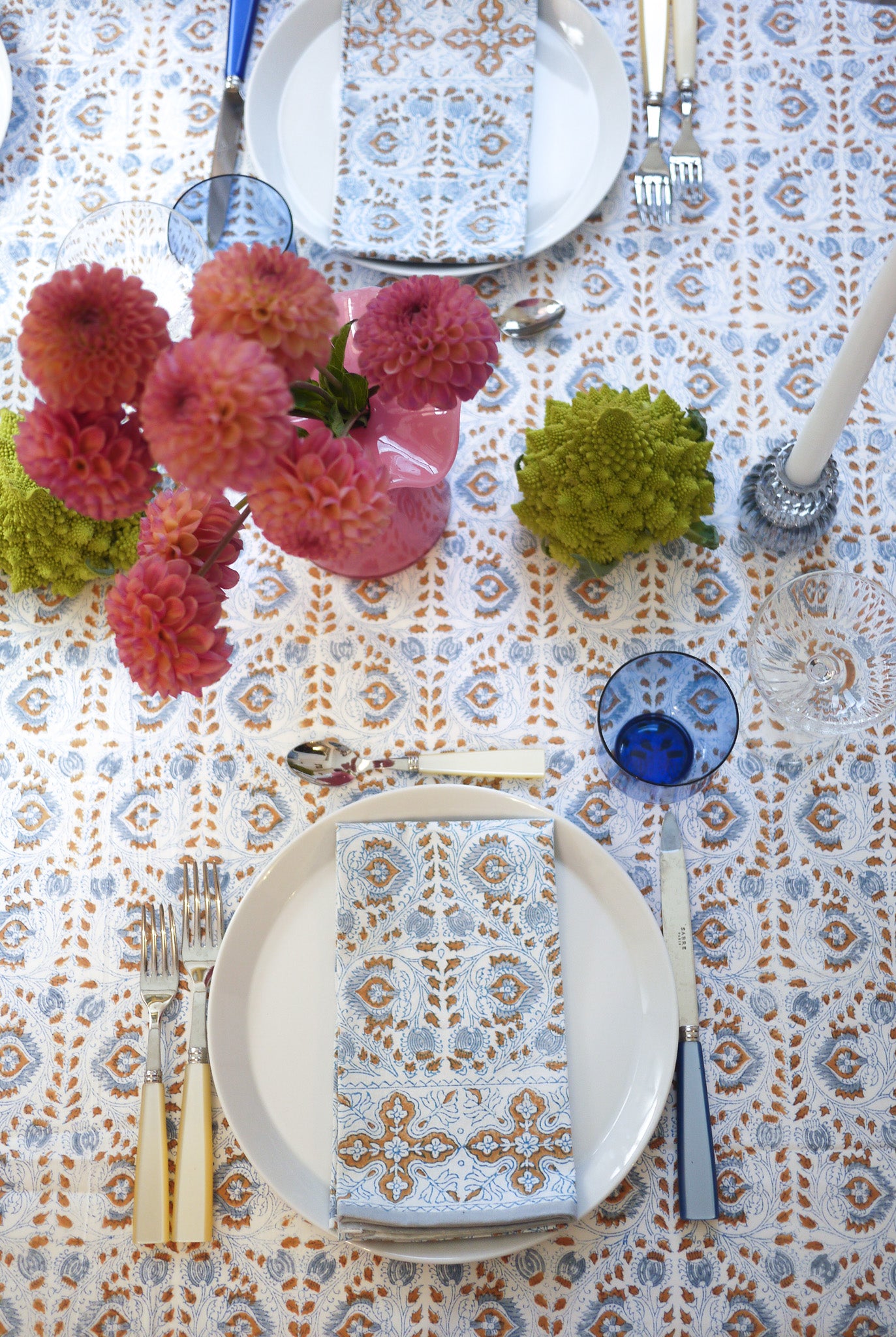 This set of four napkins includes a fun little detail, as Buggy loves to include, with charming pink French knots hand-embroidered along the hand-block printed paisley motif. Did someone say hostess with the mostess?